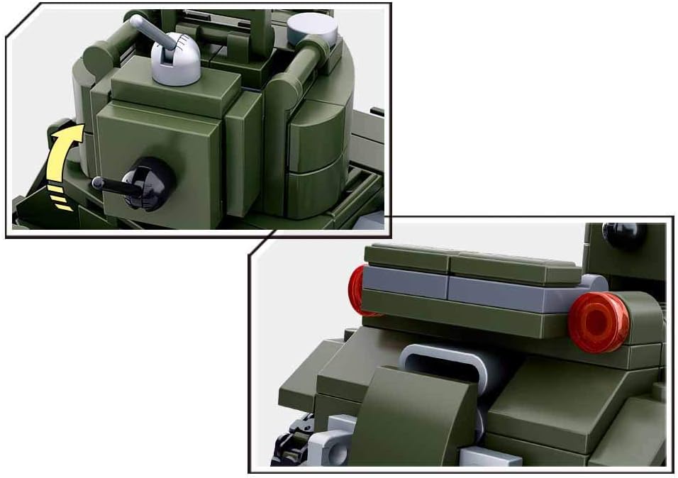 Unleash the force of Red Army armor with this 347-piece Soviet heavy tank. Complete with reinforced hull detailing, twin headlights, and a rotating turret with a long-range cannon, this build captures Cold War battlefield style. Includes 2 soldier figures with equipment, barricade props, and foliage accessories for realistic dioramas.